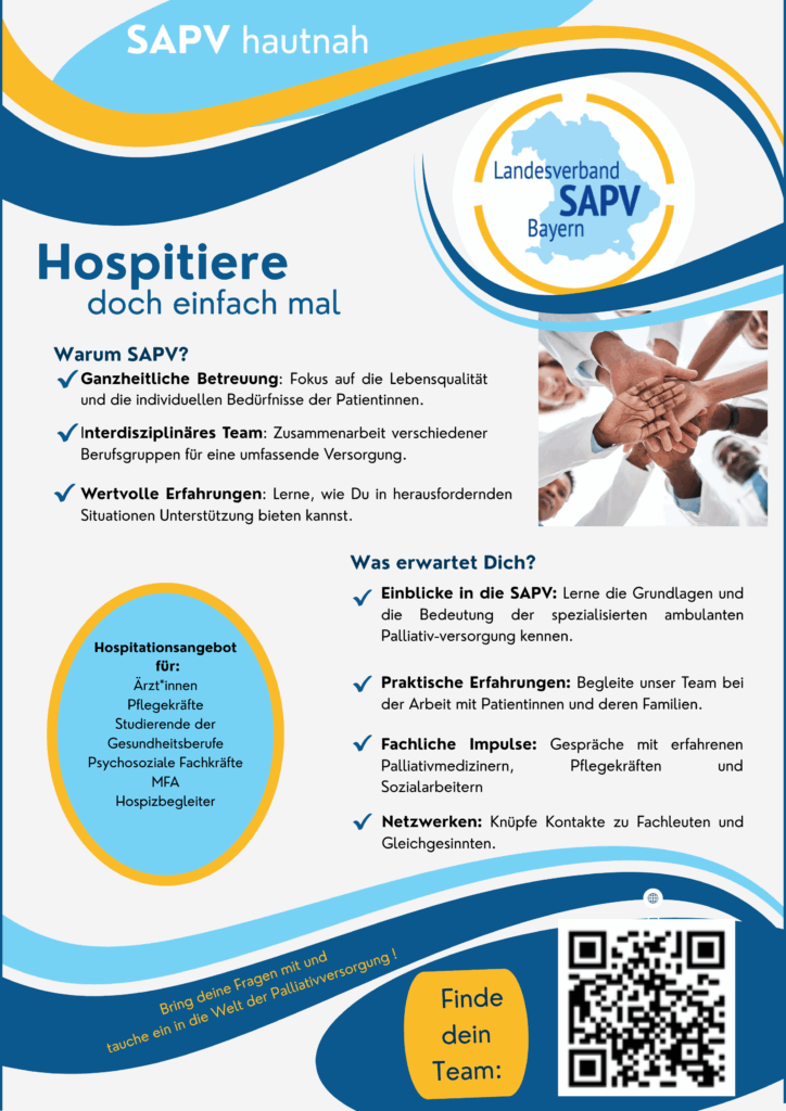 Darüber hinaus möchten wir auf das aktuelle Poster der AG Nachwuchs des SAPV‑Bündnisses hinweisen, an dem auch Palliahome aktiv beteiligt ist.