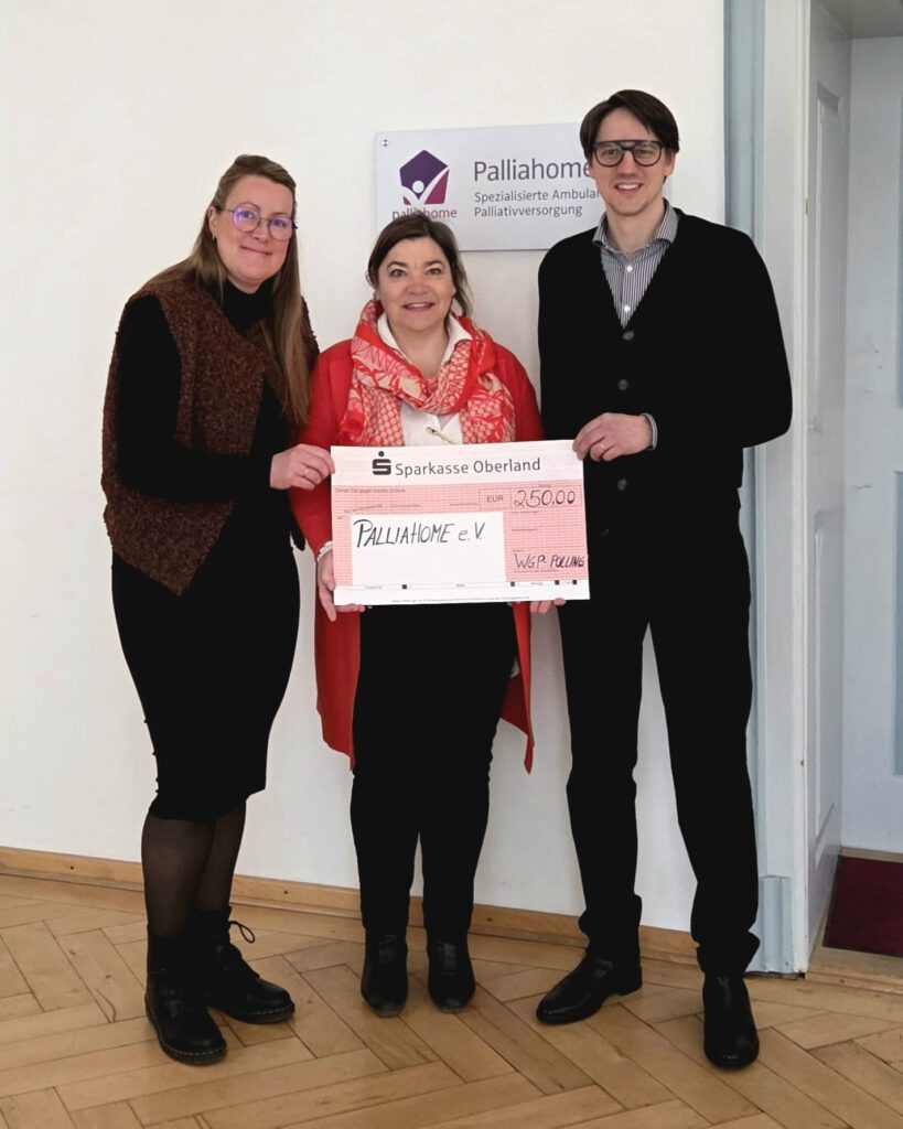Palliahome e. V. durfte sich über eine Spende in Höhe von 250 Euro freuen. Die unabhängige Wählergemeinschaft WGP hat sich im Rahmen ihres Wahlkampfs bewusst entschieden, auf klassische Werbegeschenke zu verzichten und stattdessen soziale Einrichtungen vor Ort zu unterstützen.