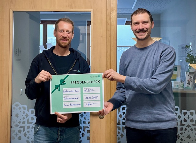 Die Heimerer Schule Schongau hat dem Verein Palliahome e.V. eine Spende in Höhe von 500 Euro überreicht. Die Übergabe erfolgte durch den Schulleiter Herrn Bentenrieder, der den symbolischen Spendenscheck an Herrn Rapp von Palliahome übergab.